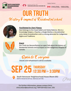 Thurs, Sept 25, 12:30–3:30pm at South Vancouver Neighbourhood House